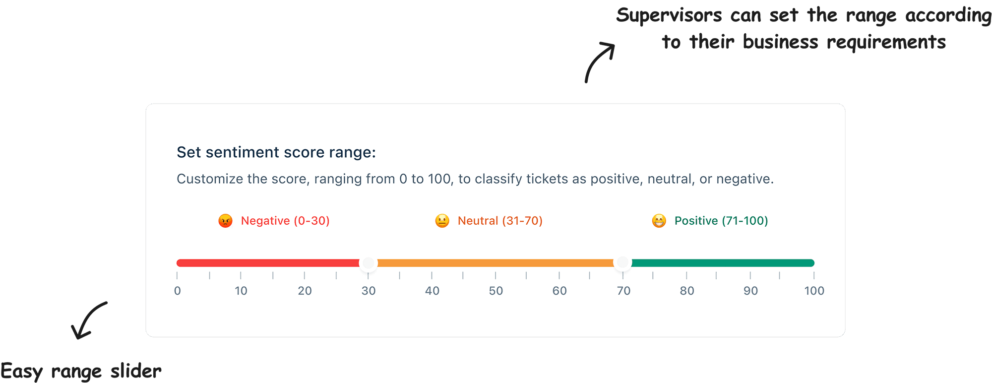 Allowed for organizational customization: Because different companies have different sentiment thresholds, the solution needed to let each organization set their own definitions of what counted as negative, neutral, or positive. The emoji system supported this flexibility without becoming complicated.
