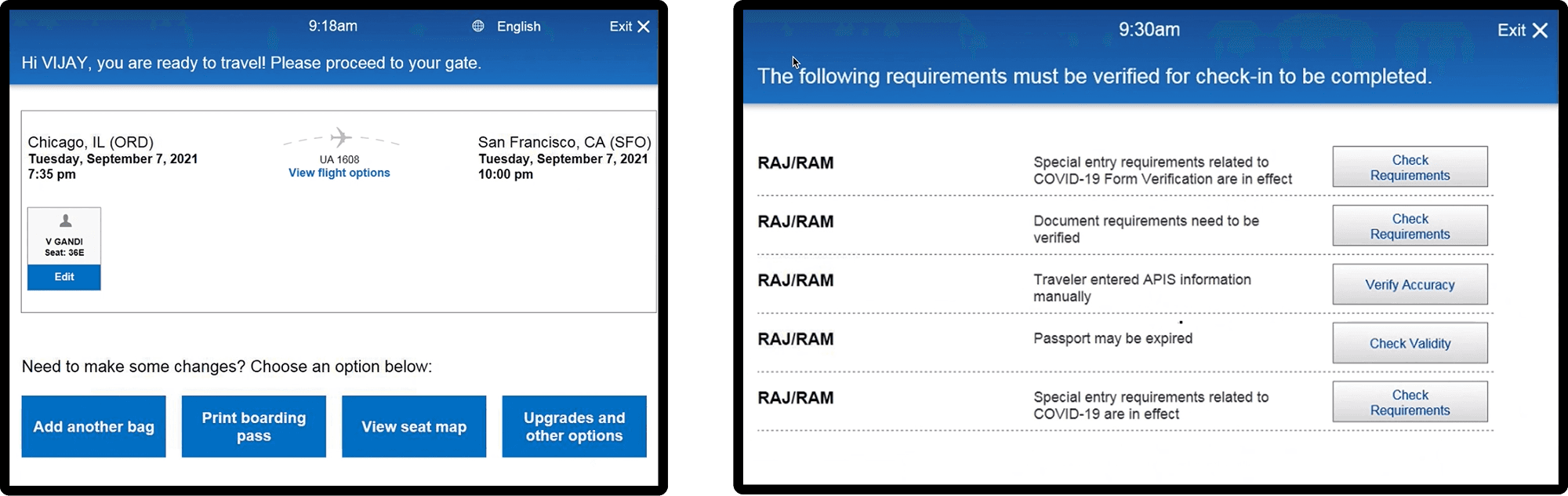 Why this worked: It optimized for the mental model of a stressed passenger who wants to know: "Am I good to go, or is there a problem I need to fix?"